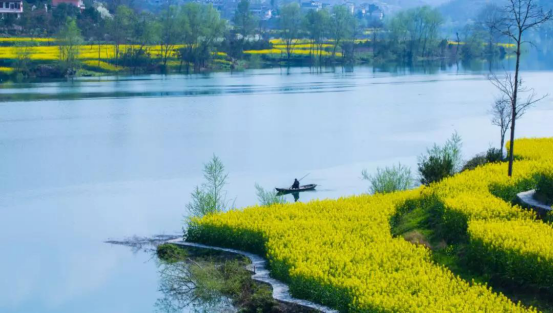 兩岸油菜花盛開