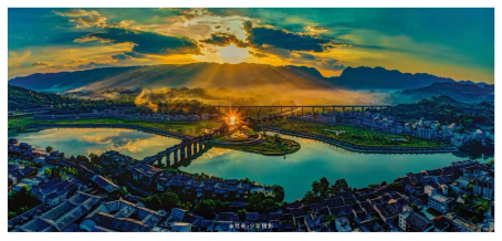 深秋的晚霞染紅天邊,這是獨(dú)屬水市的秋色。