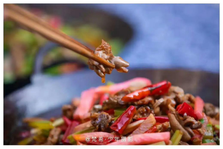 天色慢慢暗了下來,白天寧靜的古鎮變得熱鬧起來,不過很慶幸的是生活氣息依然濃于商業氣息。走進路邊的一家小店,點上一份雞雜,感受舌尖上的濯水。
