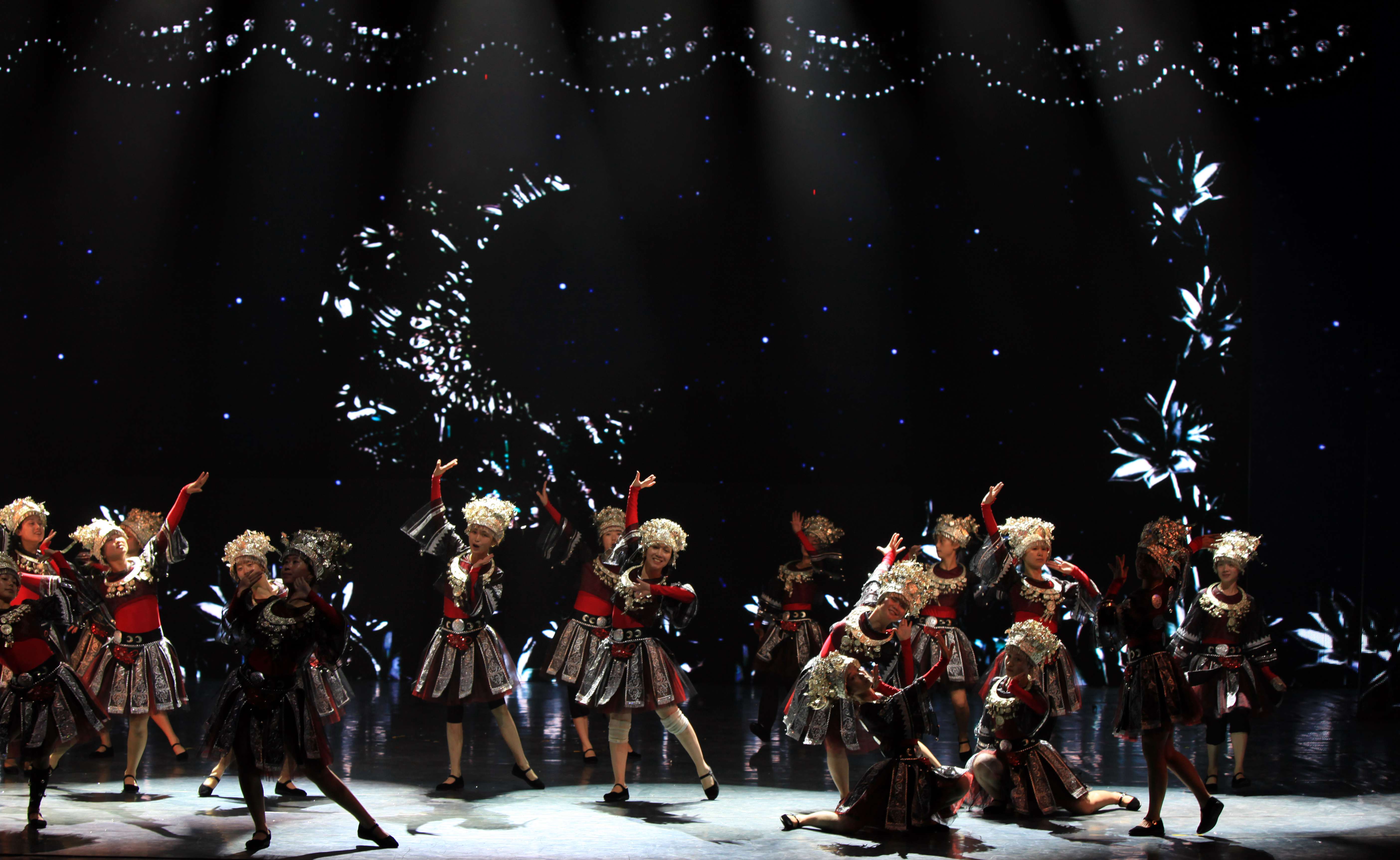 2、苗族女子群舞《銀色的山脊》(時(shí)長(zhǎng)6分10秒,演員陣容18—24人)